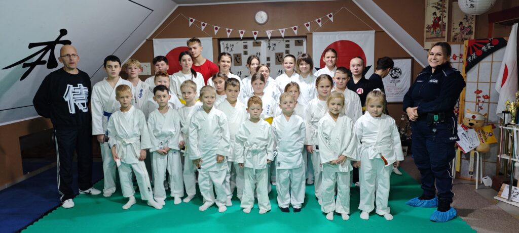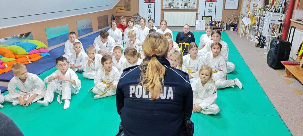 Nie zabrakło również bardzo ważnego wątku dotyczącego sztuk walki. Funkcjonariuszka w rozmowie z dziećmi podkreśliła, że karate czy kickboxing to nie tylko sport, ale także droga kształtowania charakteru, dyscypliny i wzajemnego szacunku. Umiejętności nabyte podczas treningów służą obronie i rozwijaniu pewności siebie, a nie stosowaniu przemocy. Dzieci zgodnie przyznały, że prawdziwy wojownik to ten, który potrafi panować nad emocjami i pomaga innym.